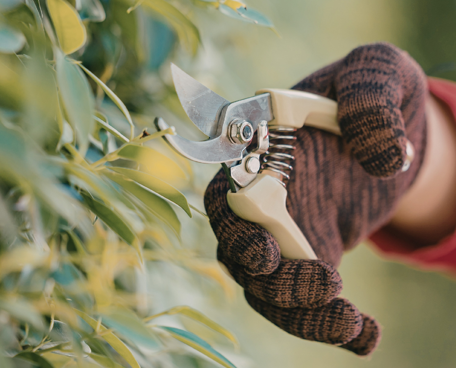 Ook een oude keukenschaar kan van pas komen bij het snoeien. Deze kun je namelijk gewoon gebruiken voor het afknippen van fijnere onderdelen, zoals uitgebloeide bloemen.